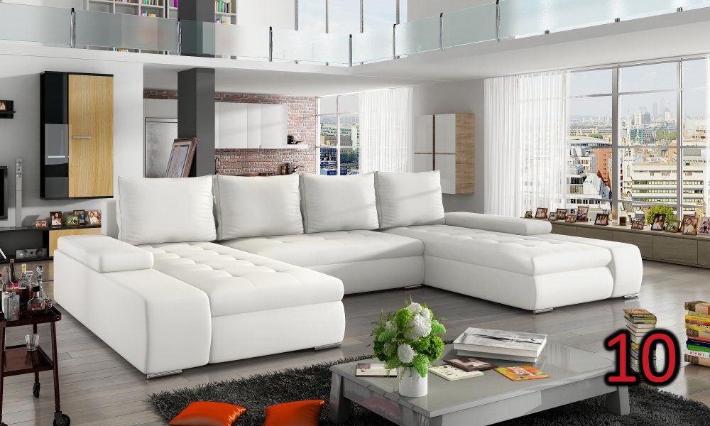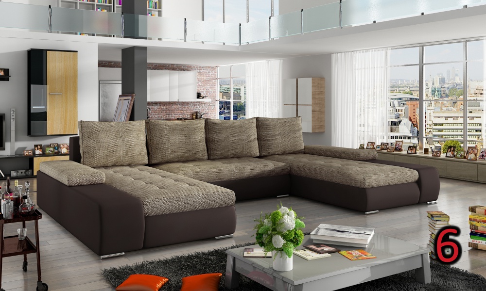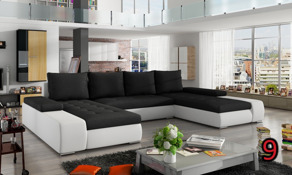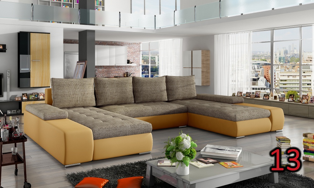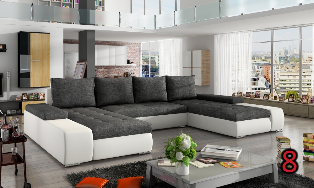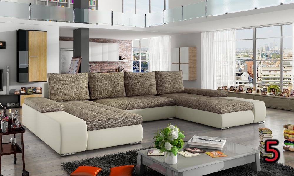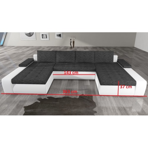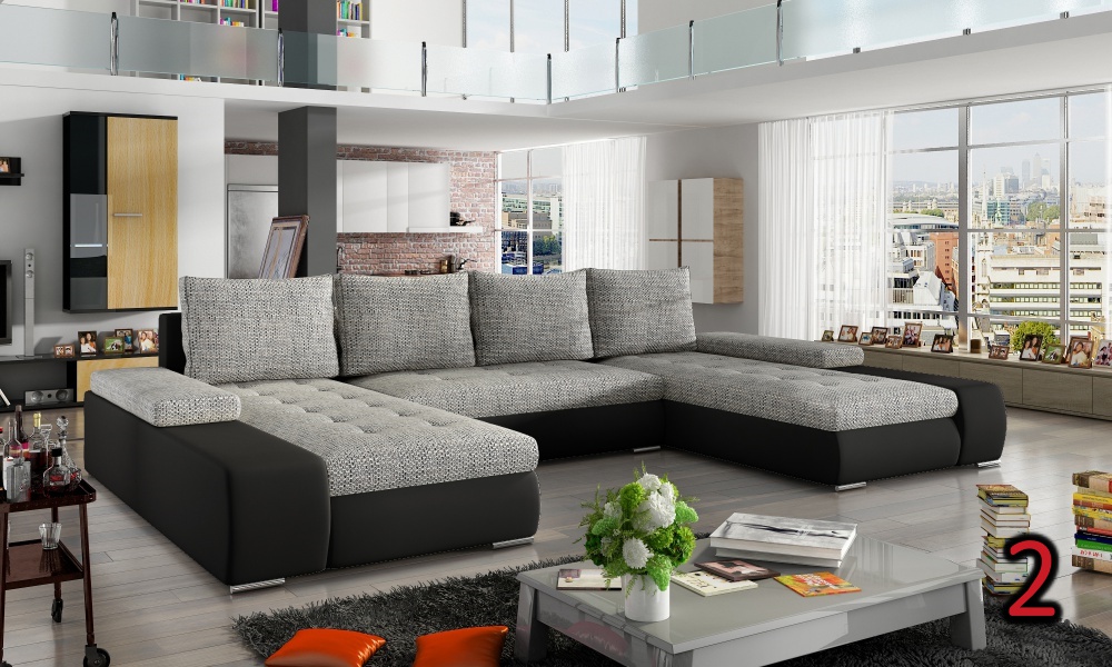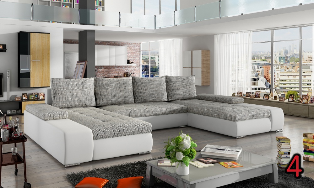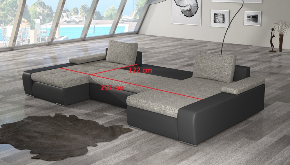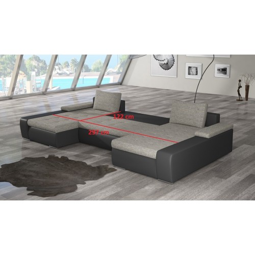 An additional advantage is the possibility of adjusting the corner sofa for night rest. An intuitive unfolding function based on a pull-out bottom and a flip-out backrest makes it possible to make a comfortable bed with dimensions of 297x122. After unfolding the corner sofa, a capacious bedding compartment is available. The furniture is a combination of two colour versions, which you can choose according to your preferences. The upholstery is made of top quality material resistant to abrasion and fading, which makes MARINA a piece of furniture that will please its user for a long time, ensuring comfort.